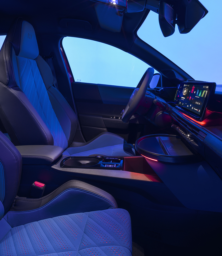 Desde acabados oscuros hasta acentos inspirados en el espíritu deportivo —cada detalle refleja el espíritu HF, refinado y agresivo. Inspirado en la estética del automovilismo, el nuevo interior cuenta con asientos de estilo deportivo.
